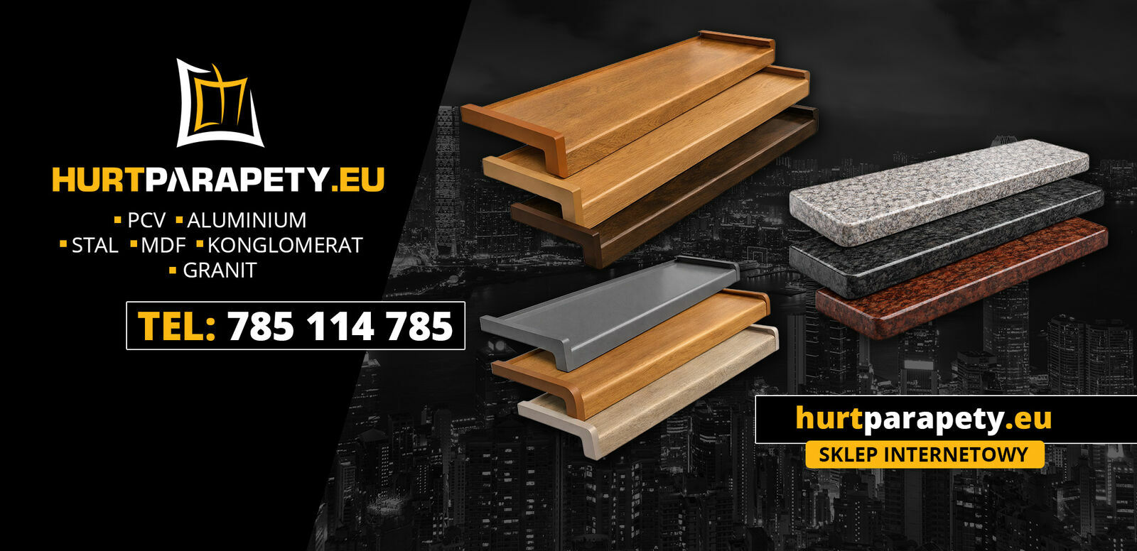 HURTPARAPETY.EUOferujemy szeroką gamę parapetów wewnętrznych i zewnętrznych (Pcv, Aluminium, Stal, Mdf, Aglomarmur, Granit)